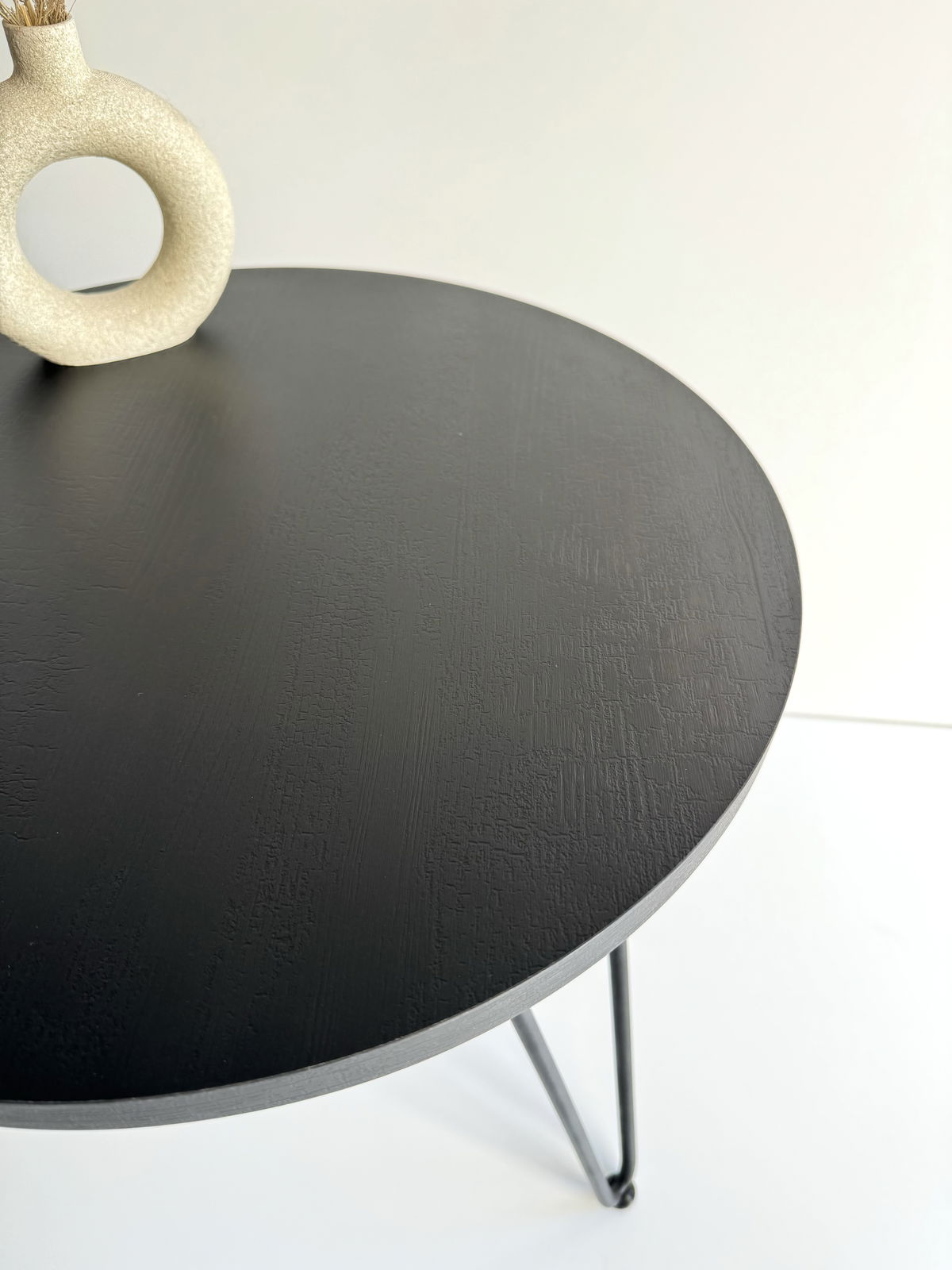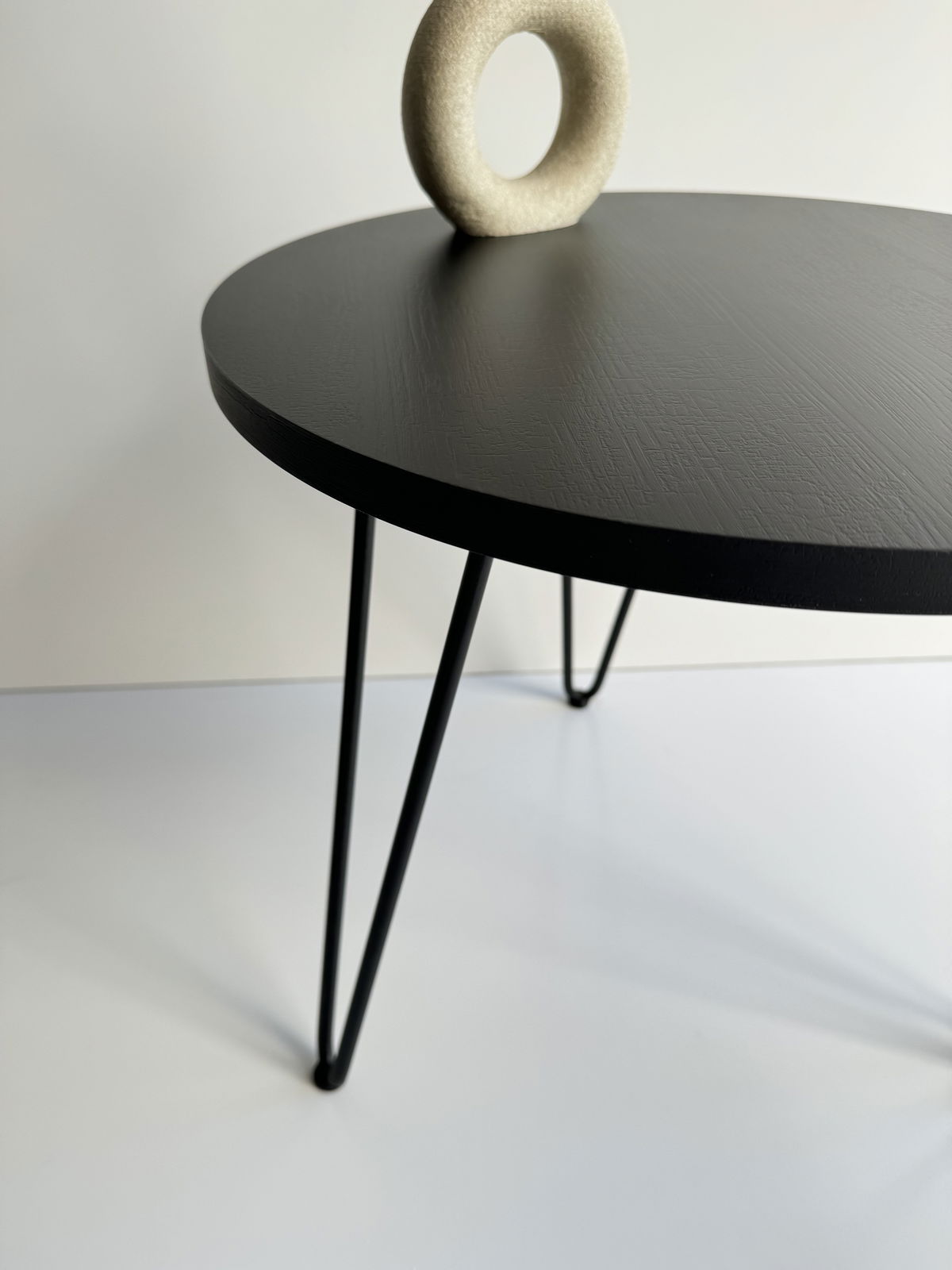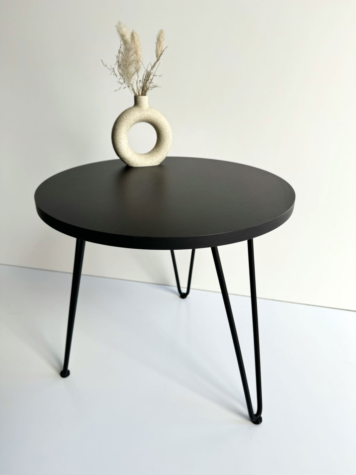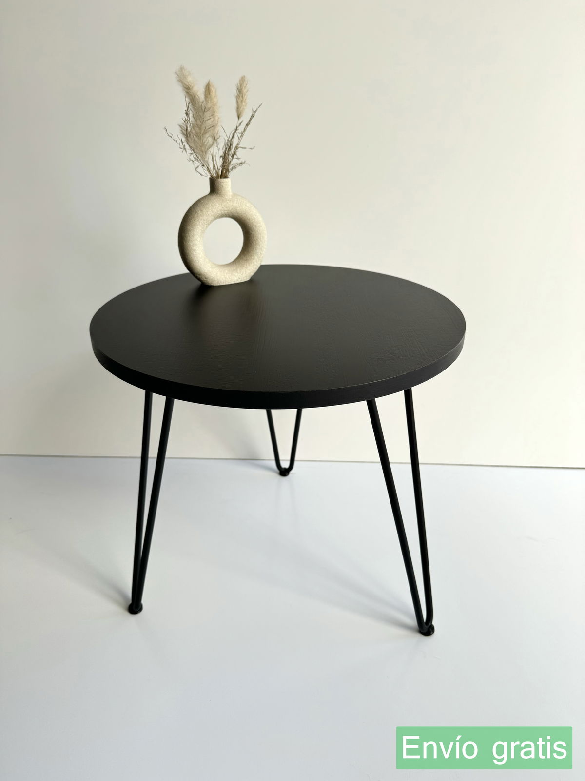 ° Mesa de arrime / Ratona circular con patas Hairpin y regatones para no rallar el suelo.